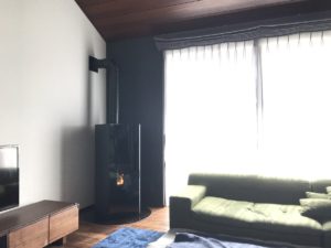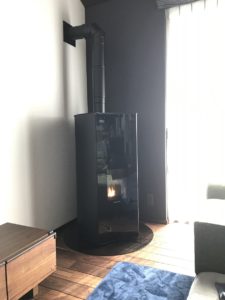 モダンなインテリアにスッと溶け込んで、黒いペレットストーブが