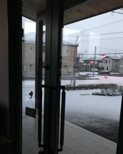 昨日から寒かったので、もしや…と思ったら今朝窓の外は雪。