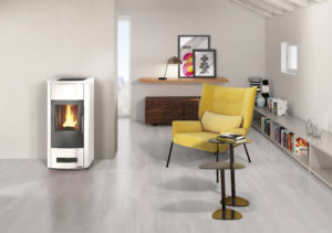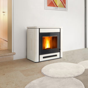 背の低い外観が特徴のモデル。 高さが79㎝でペレットの投入も負担がかかりません。 ピアツェッタならではの足元温風は、足先から温めてくれるので女性に人気があります。マルチフォーコシステムも採用されています。