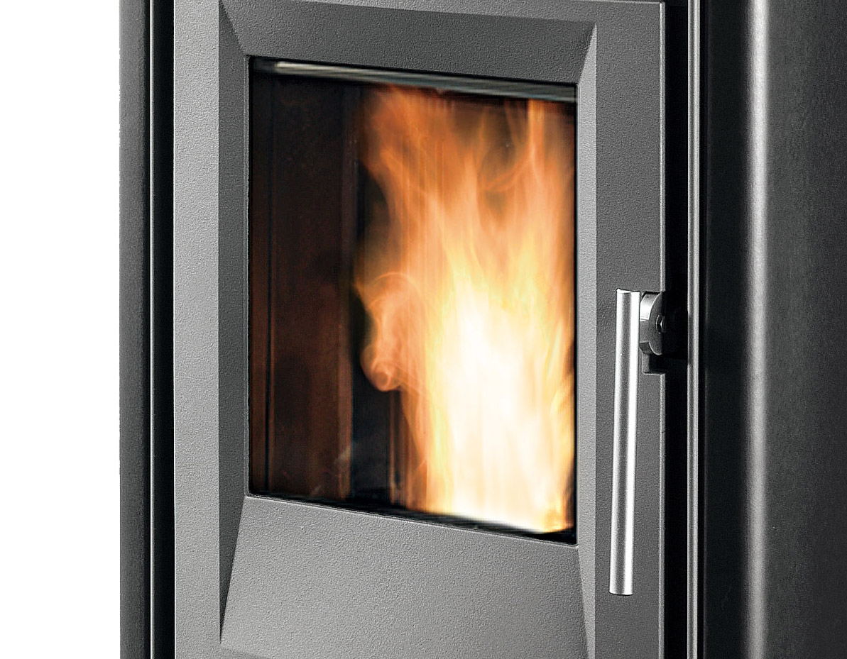 サイドパネルのデザインが美しいコンパクト設計のペレットストーブ。