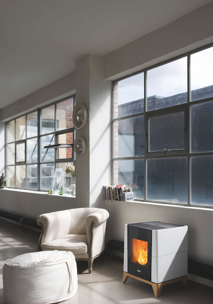 木製の足にセラミック製の外装をまといコンパクトにお部屋に調和するペレットストーブ。 自然対流のみで部屋を暖めるタイプですので、とても静かにじんわりと部屋を暖めます。 燃焼室内はバーミキュライトで覆われており、耐火性能を高めると共に、蓄熱された輻射熱で燃焼効率を高めています。 そのため他の輻射熱ストーブより暖かくなるのが早いと感じます。