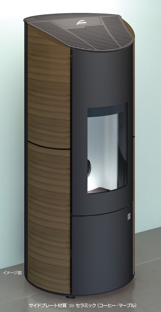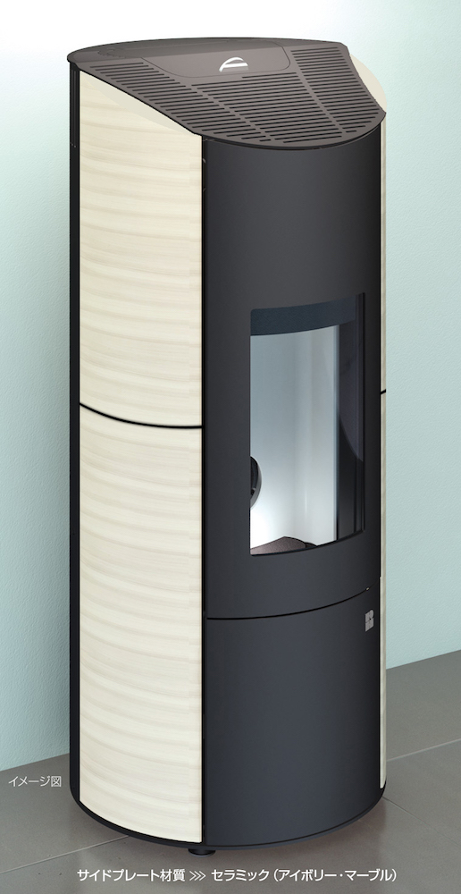 高気密住宅対応の室内負圧に影響されない密閉式ペレットストーブ。 自然対流による輻射熱で室内全体をソフトに温めるファンレス方式を採用した抜群の静音設計となっています。 外装のナチュラルストーン・セラミックは蓄熱性に優れ、薪ストーブのような包み込む温かさが特徴です。操作ディスプレイは、操作のしやすいカタカナ表記。