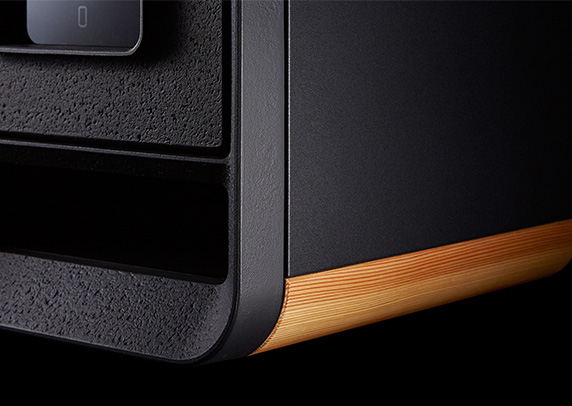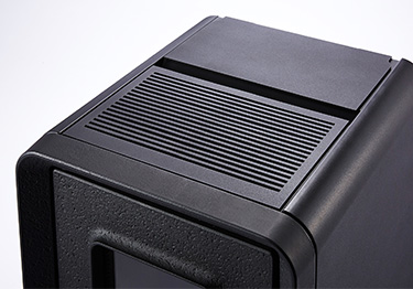 普遍的な佇まいを目指し、作為的な造形を排除しデザインされた中性的な形。ストーブの部材ほぼ全てを山形による製造にこだわったmade in YAMAGATA。山形鋳物を扉部に使用し、脚部のアクセントは天童木工の圧密技術により山形杉を使用している。ほのかと同じ足元温風を備え、火力が小さいときには自然対流モードとなります。燃焼安定のための給気自動調整機能や室温設定も出来る高機能モデル。高気密高断熱住宅にも対応したシールドタイプ。